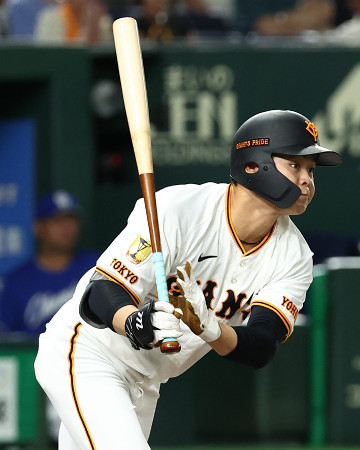 巨人は1回に中山(写真)の2点適時打で先制、さらに浦田と山瀬の適時打で計5点を挙げた。先発の山崎から6投手をつなぎ、2番手の戸郷が8勝目=1日、東京ドーム 【時事通信社】