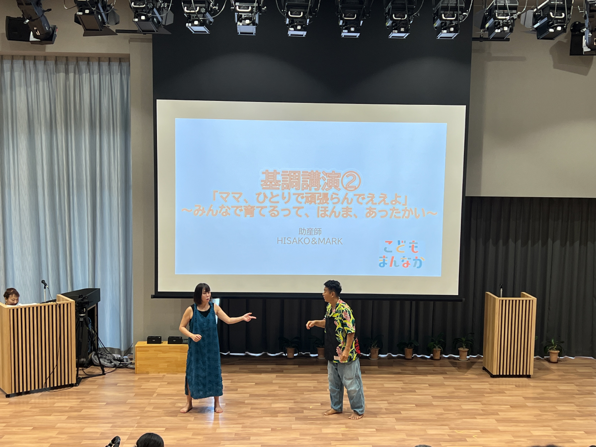 看護師や助産師として働くユーチューバーで12児の母のHISAKOさんと夫のMARKさんの基調講演の様子